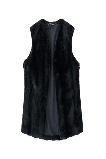 O colete é aquela terceira peça essencial que compõe qualquer look. Fica sempre um charme! Colete de pêlo preto Lilimoon, aberto na frente e não possui zíper e fechamento. Possui forro. Acabamento e costura no mesmo tom.