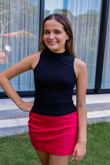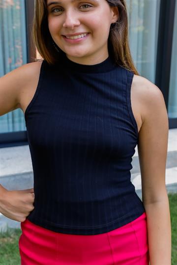 A gola alta sempre dá um charme a mais na peça. Com esta cropped não é diferente. Cropped de gola alta em malha canelada. Acabamento e costura no tom.