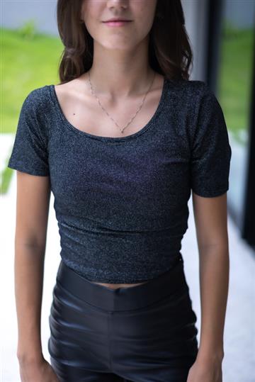 Esta blusa é ideal para as meninas que gostam de curtir uma balada sem perder o conforto. Bem versátil e pode ser usada com saias, calças e até mesmo shorts! Blusa de lurex prata com manga curta, decote redondo, com elastano. Acabamento e costura no tom.