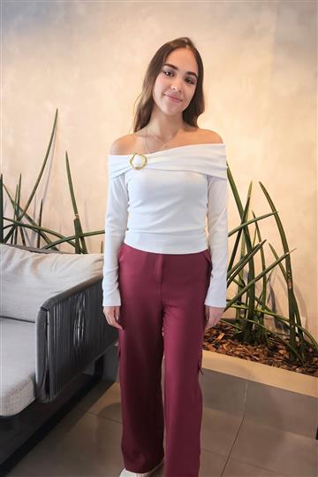 Sem dúvida alguma a coleção outono/inverno é mais chique. Com esta blusa não é diferente. Blusa de malha canelada manga longa, ombro a ombro com detalhe de fivela dourada.