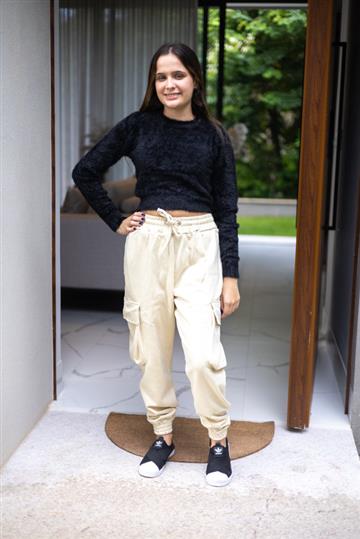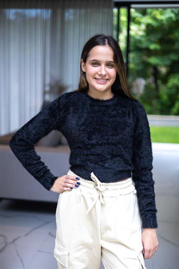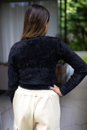 Impossível não se apaixonar por esta blusa! É uma peça linda para os dias frios! Blusa de manga longa com pêlos, decote redondo e leve elastano