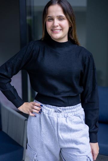 O tricot é uma tendência nos dias frios pois além de ser estiloso também aquece! Blusão de tricot  com leve gola estilo solto