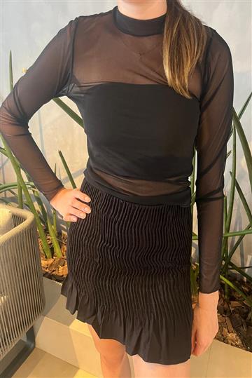 A blusa estilo segunda pele é bem prática de ser usada e esquenta nos dias mais frios. Blusa segunda pele de manga longa com leve gola. Acabamento e costura no tom.