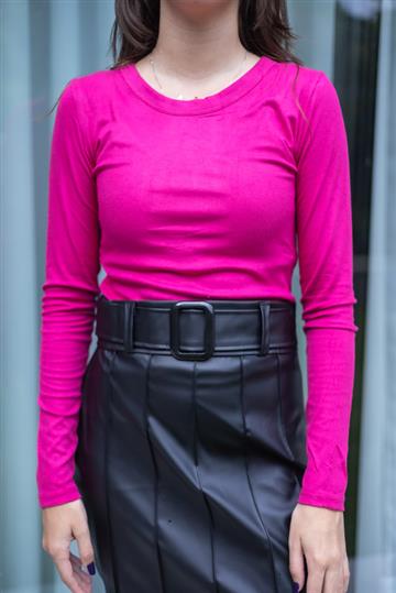 Blusa de malha canelada de manga longa e decote redondo Acabamento e costura no tom