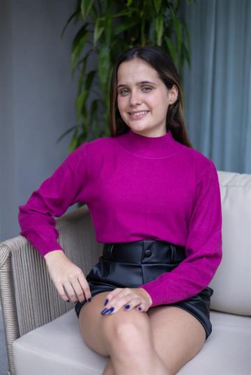 As blusas básicas são peças coringa para criar looks despojados! Blusa de manga longa de tricot com elastano e leve gola