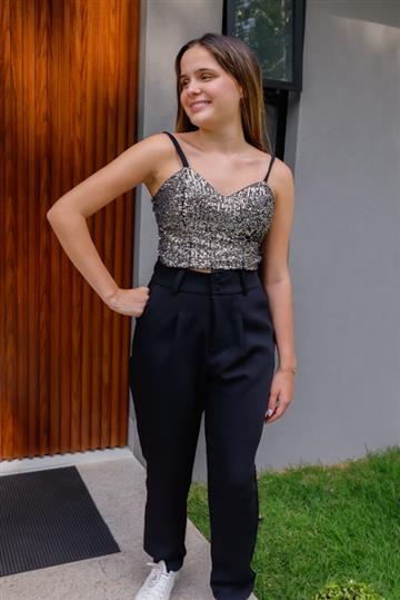 Uma peça coringa que não pode faltar no seu closet é essa! Calça social de tecido com cintura alta, dois bolsos frontais, botões e pregas. Acabamento e costura no tom.