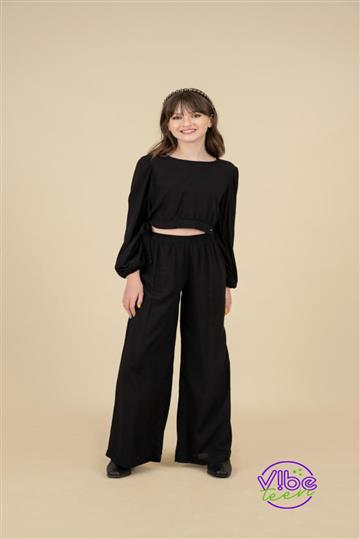 Sabe aquele conjunto que te deixa linda em qualquer ocasião? É este!! Esta combinação ficou simplesmente perfeita! Conjunto viscose blusa cropped com manga longa solta com elástico nos punhos e calça pantalona com elástico na cintura