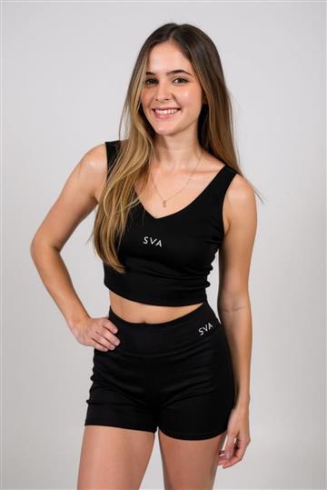Top em poliamida com elastano com decote em V frontal