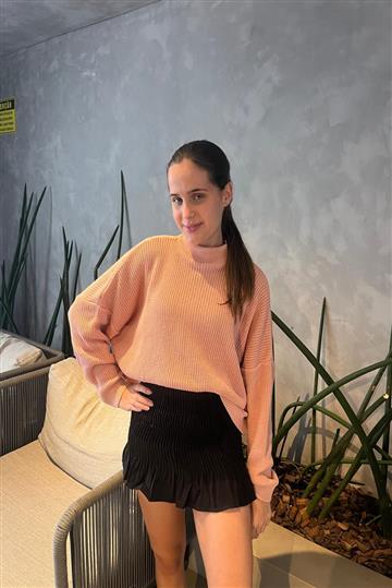 Ter uma saia preta é peça básica para compor qualquer look. Saia toda de lastex com leve babado na barra. Acabamento e costura no tom.