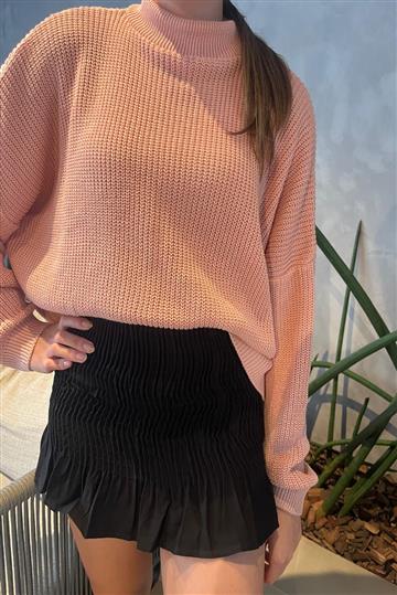Ter uma saia preta é peça básica para compor qualquer look. Saia toda de lastex com leve babado na barra. Acabamento e costura no tom.