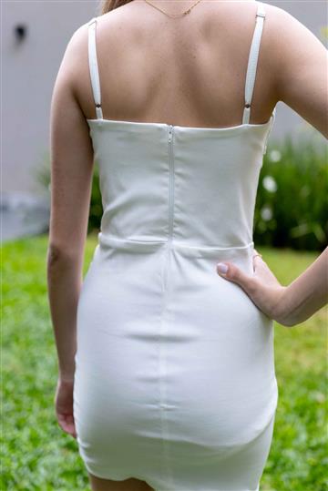 Vestido com elastano tubinho com pequeno detalhe na frente, alças reguláveis e zíper nas costas