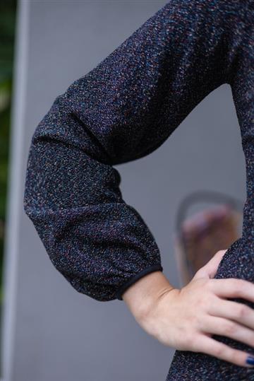 E quem disse que não dá para ficar linda mesmo nos dias frios? Com este vestido você vai à uma festa pronta parar arrasar. Vestido de lurex com manga longa, detalhe nas costas e elástico nos punhos. Acabamento e costura no tom!