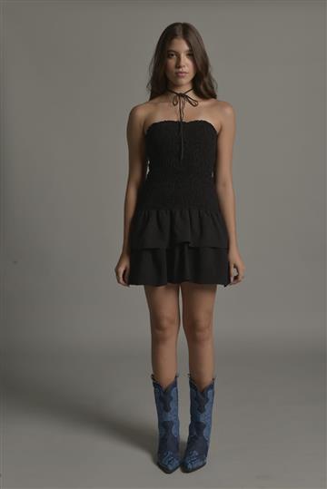 Pensa em um vestido simplesmente lindo? É esse! Você pode usar no calor e no frio. Vestido de lastex no corpo e saia com babados tomara que caia Possui mangas removíveis