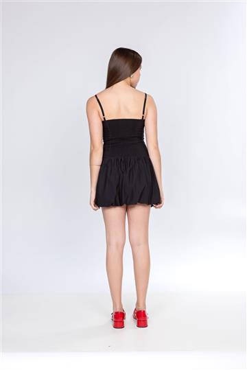 Vestido balonê de tecido com elastano, alças reguláveis, lastex nas costas e saia balonê